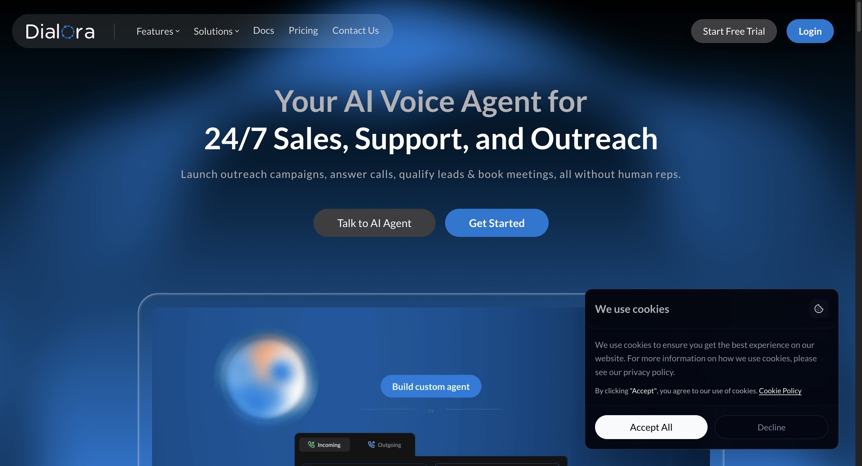 - •Dialora starts at $39/mo for 200 minutes with everything bundled, but the company's founding year, headquarters, funding, and team size are all undisclosed. For a product handling your customer calls, this transparency gap matters.