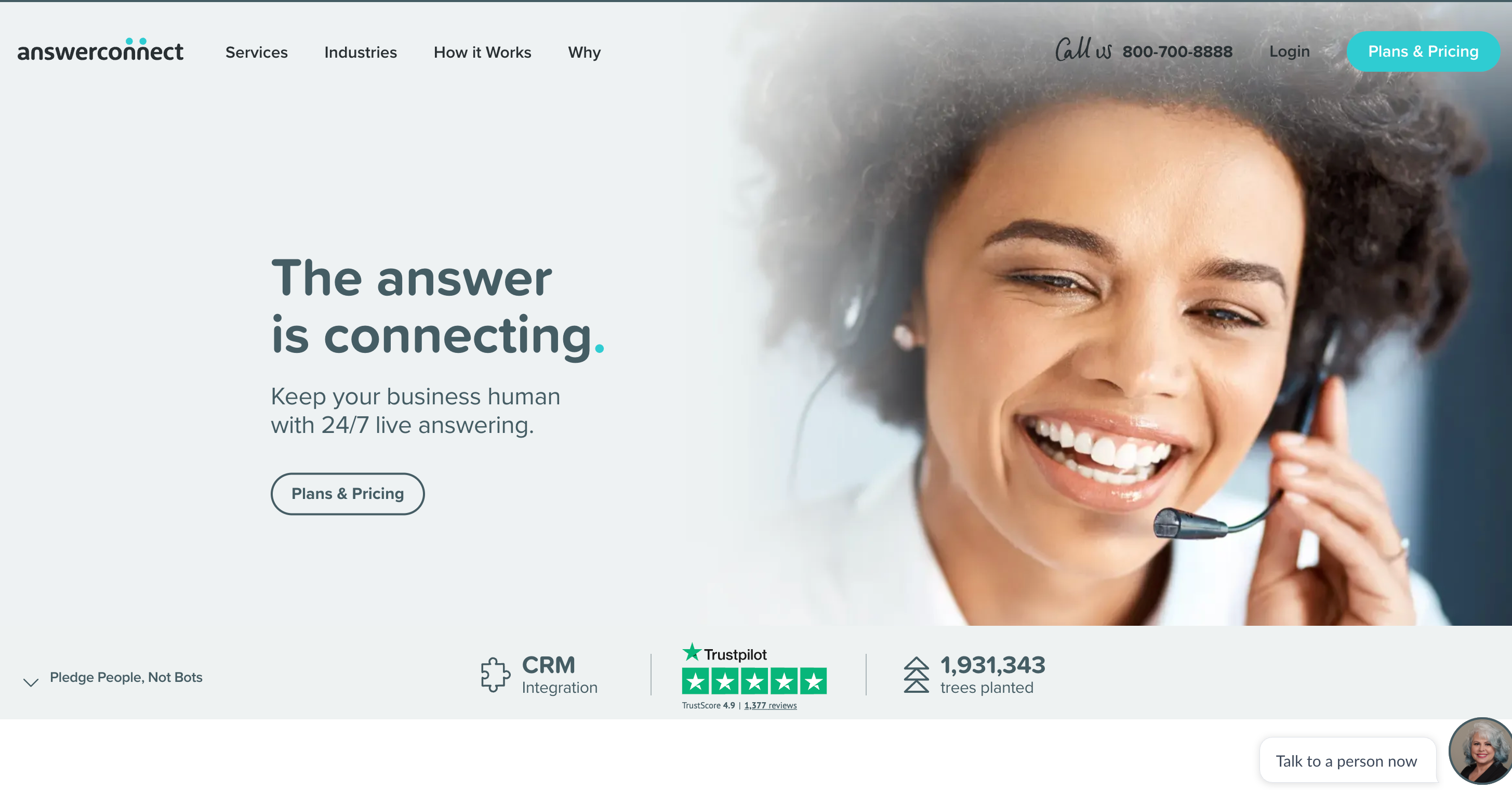 They've earned recognition as Forbes' Best Answering Service for 2025 and maintain a notable environmental commitment, planting over 1.9 million trees through their partnership programs. Their distributed workforce model means agents work remotely rather than from a single call center, which can improve resilience during outages but also means quality depends heavily on individual agent environments.
