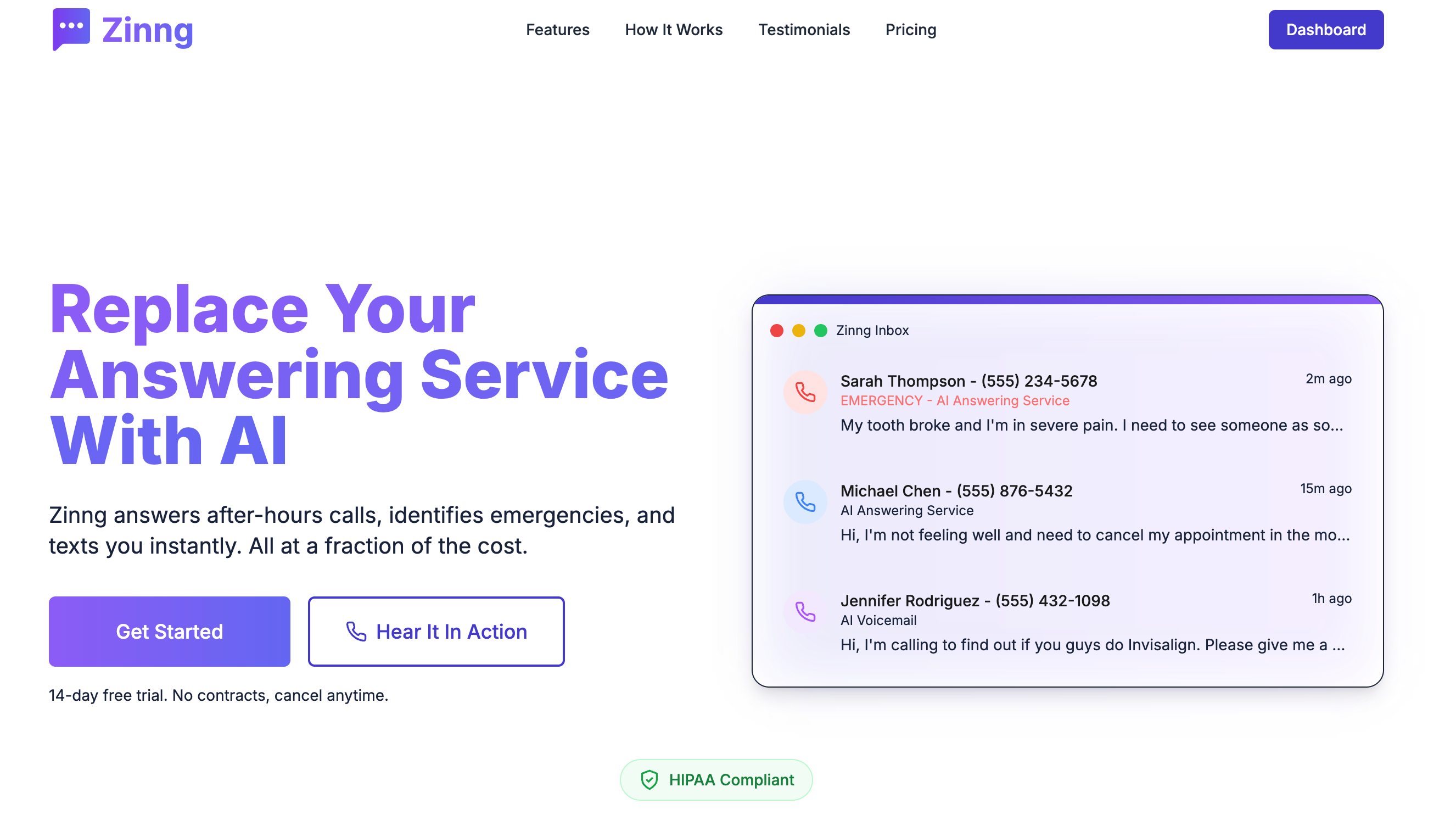For most Arizona businesses, Zinng is the clear winner. At $49/month with $0.12/minute overage, it costs a fraction of every traditional alternative while providing genuinely better coverage: instant answering, zero hold times, full transcripts, HIPAA compliance, and the ability to handle Arizona's brutal summer call surges without flinching. The 14-day free trial means you can test it under real conditions before spending a dollar.